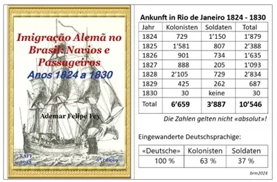Am 25. Juli 1824 trafen 39 deutsche Kolonisten im Gebiet der Feitoria do Linho Cânhamo, dem heutigen São Leopoldo ein. Fast alle waren protestantischer Religion. Ihre Reise hatten diese «ersten Deutschen» am 24.03.1824 mit dem Schiff Anna Louise in Hamburg begonnen. In Rio de Janeiro sind sie am 04.06.1824 eingetroffen. Insgesamt wurden 327 Deutsche mit diesem Schiff transportiert: Baron Kettler, Infanterie-Hauptmann, 269 Männer, die sich zum Militärdienst anboten, sowie 16 Frauen und 41 Kinder, wie die Zeitung Diário de Rio do Janeiro vom 08.06.1824 festhält.
